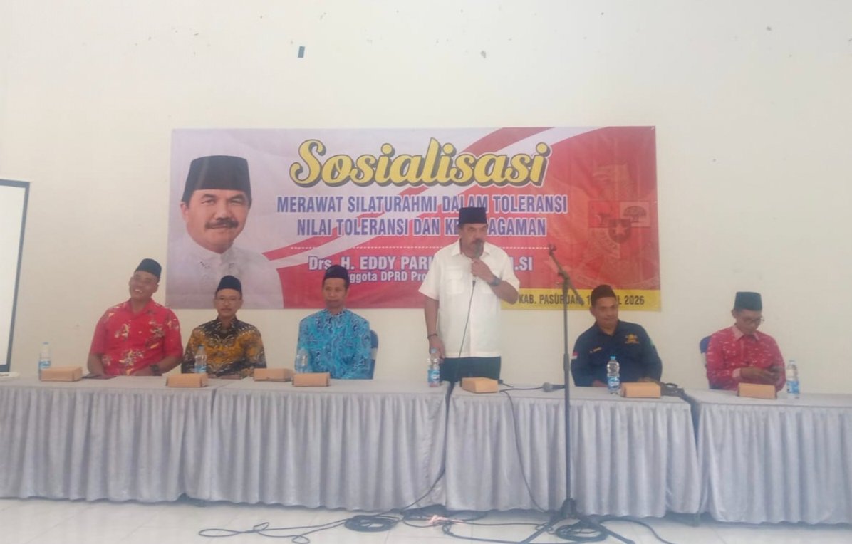 PASURUAN, PasuruanToday.com – Anggota DPRD Provinsi Jawa Timur dari Fraksi PDI Perjuangan, Drs. H. Eddy Paripurna, M.Si, menggelar kegiatan Sosialisasinya bertajuk “Merawat Silaturahmi dalam Toleransi, Nilai Toleransi, dan Keberagaman” pada Sabtu (18/04/2026).