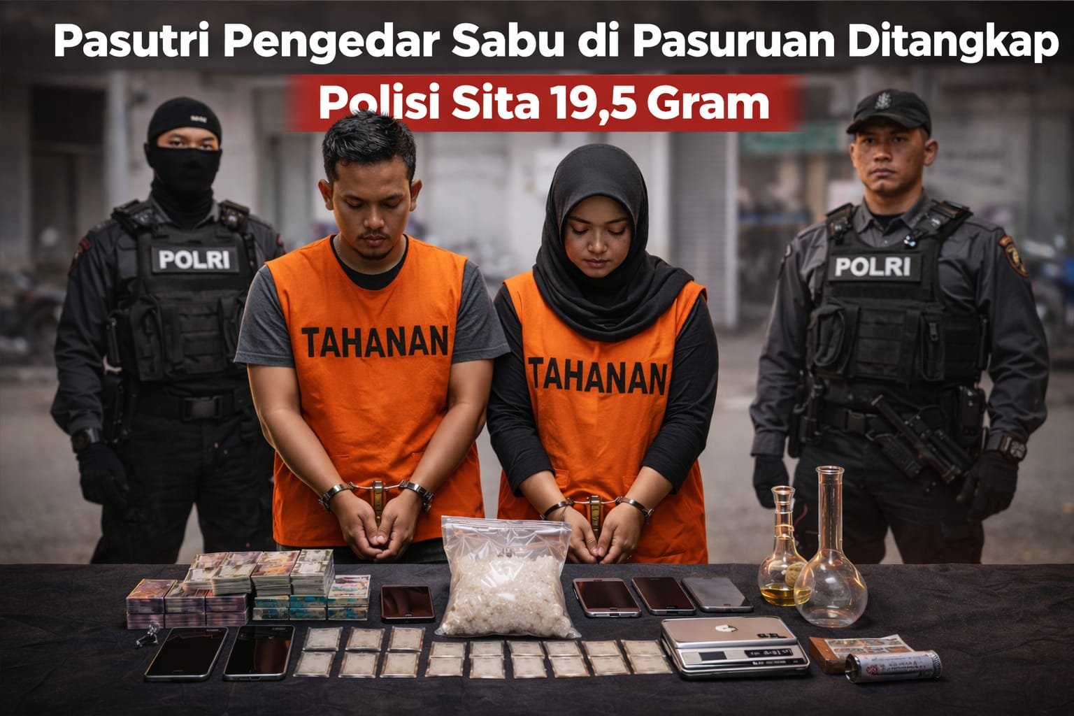 Dua tersangka berinisial AHP (43) dan LHR (35) diamankan berikut barang bukti sabu seberat 19,504 gram. Keduanya merupakan warga Kecamatan Beji, Kabupaten Pasuruan.