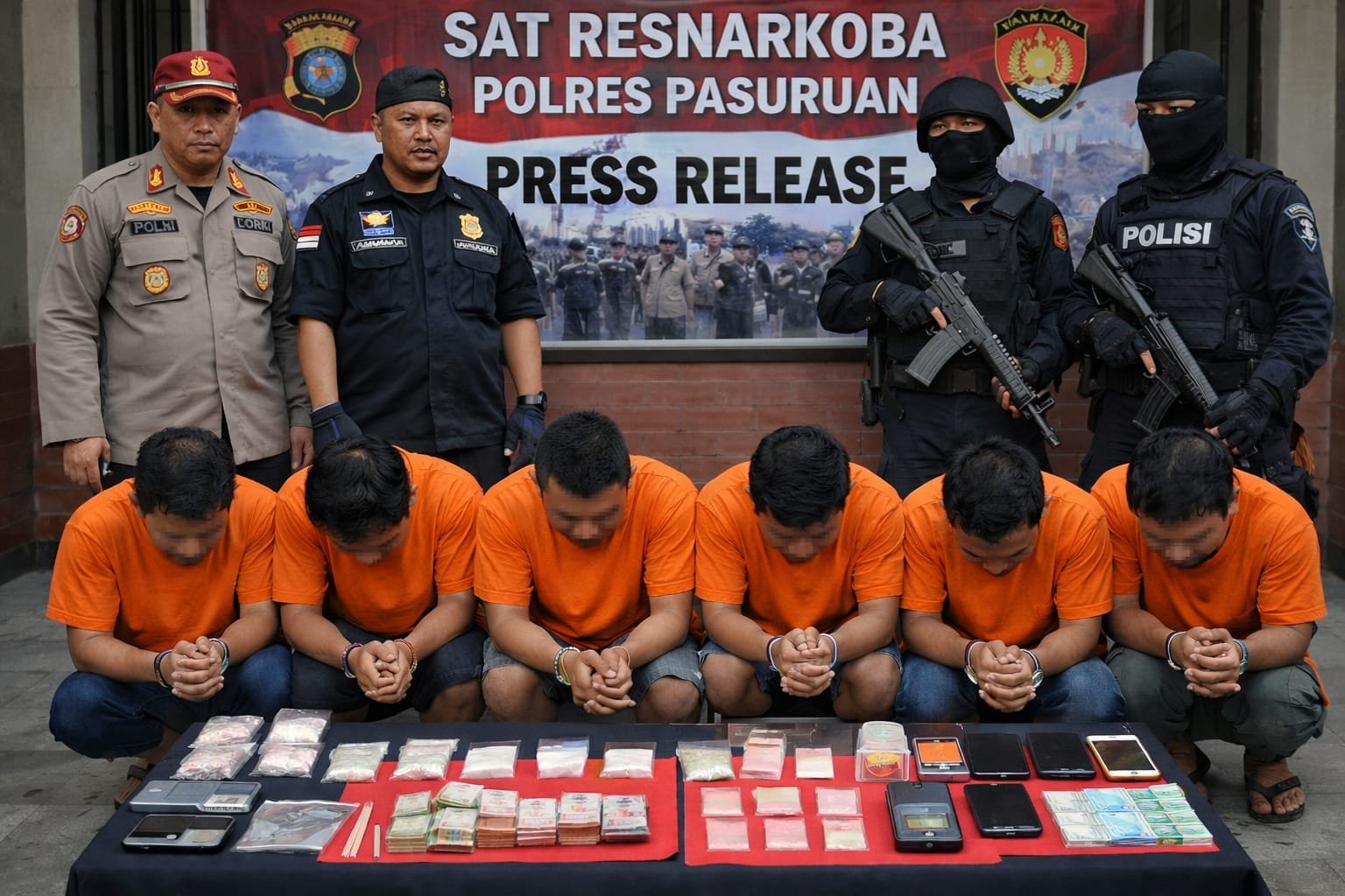 PASURUAN, PasuruanToday.com — Satuan Reserse Narkoba (Satresnarkoba) Polres Pasuruan menangkap enam tersangka pengedar sabu dalam operasi selama 24 jam di wilayah Kabupaten Pasuruan, Jawa Timur, pada 9–10 Februari 2026.
